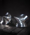 These couters have all the features of classical Gothic armor: pointed “nose”, reinforcement ribs/flutes on the surface of armor, sharp lines.