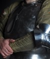 Gothic pointed outers have leather belts with buckles for fastening on the joint. This armor should be worn only over padded gambeson.