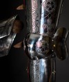 Metal of plate legs and sabatons are covered with floral patterns of grape wines and Tudor roses, like Greenwich Armour masters of Tudor epoch were making on their works. However, only your imagination defines how your plate legs and sabatons will be decorated.