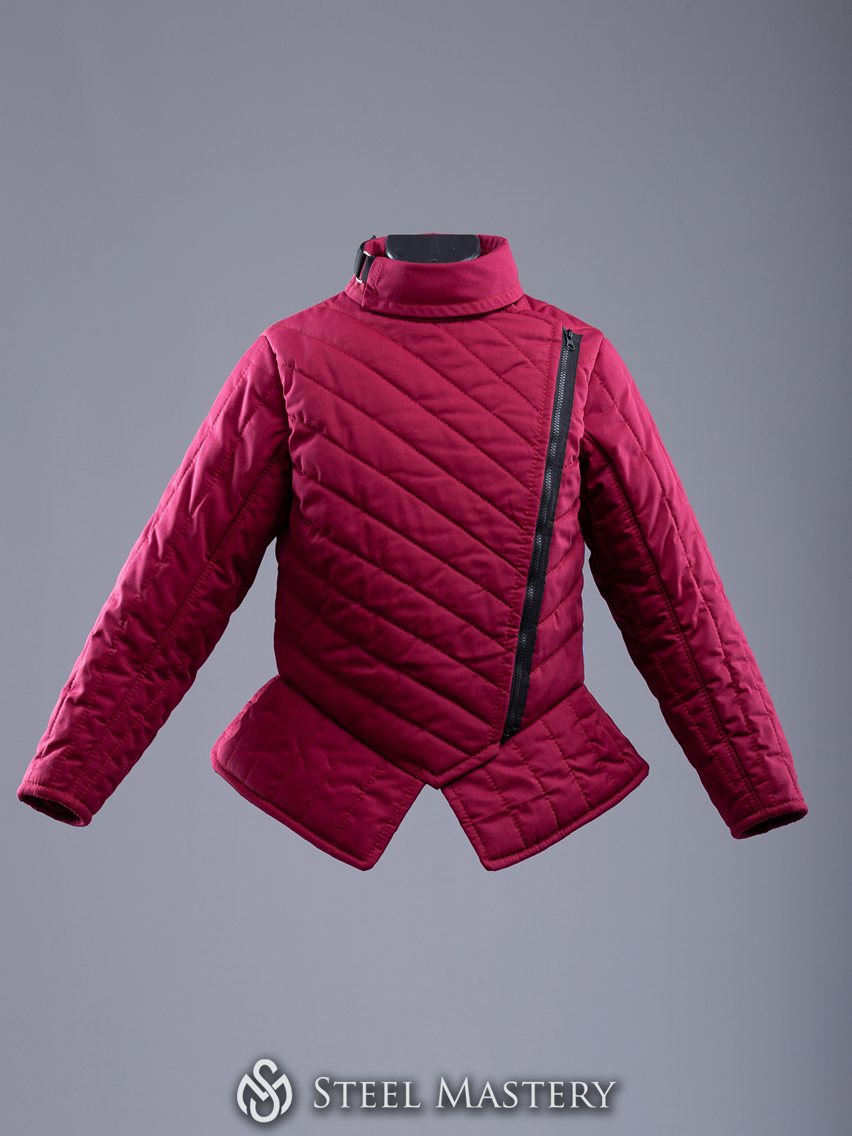Gambeson jacket has a traditional for modern fencing equipment obliquely overlapping type - almost full on the chest and one-half on the stomach. Such a cut type allows not only to provide additional protection, but also increase mobility due to the jacket's lightning, which is important in combat. Looks like you get an additional soft chest shield, cool and stylish.