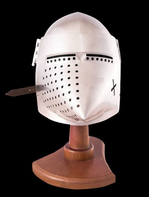 You may also like these models of functional medieval helms with similar type of visor: Bascinet Hounskull of the early XV century, the Italian top-pointed bascinet of the XV century, Bascinet Hounskull with single ocular.