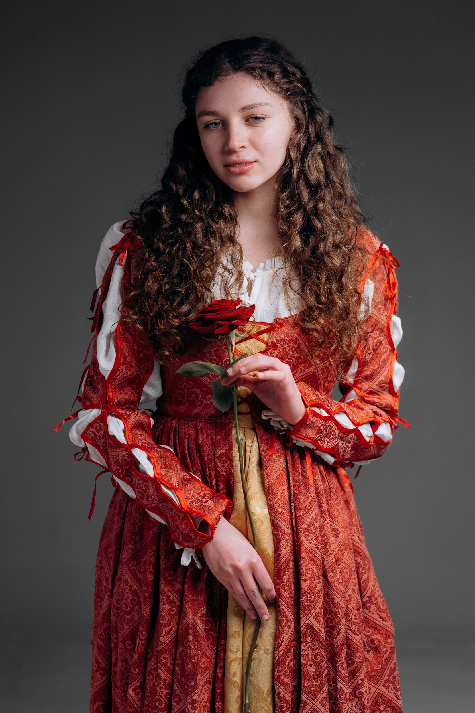 This model of Italian gown is made according to the patterns, which were used by medieval tailors.