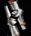 If you need flawless and reliable plate arm protection, so we recommend you to choose this model without hesitation. These arms are part of such medieval battle armor as Armor Garniture of George Clifford, Third Earl of Cumberland – the best one, what the best English armorers could ever create in the XVI century. The simplest system is always the steadiest going. So, these plate arms represent close tube structure, elements of which are joined with pivot fixing through elbow cap with two transitional plates. Circular protection of elbows flows to the tube two-leaved bracer. We also did not forget about strong leather belts, which fix plate arms on your limbs reliably and comfortably and attach protection to other armor elements.