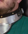 Steel gorget for SCA and fencing on the thick leather base – is a simple as well as reliable element of your reenactment clothing.