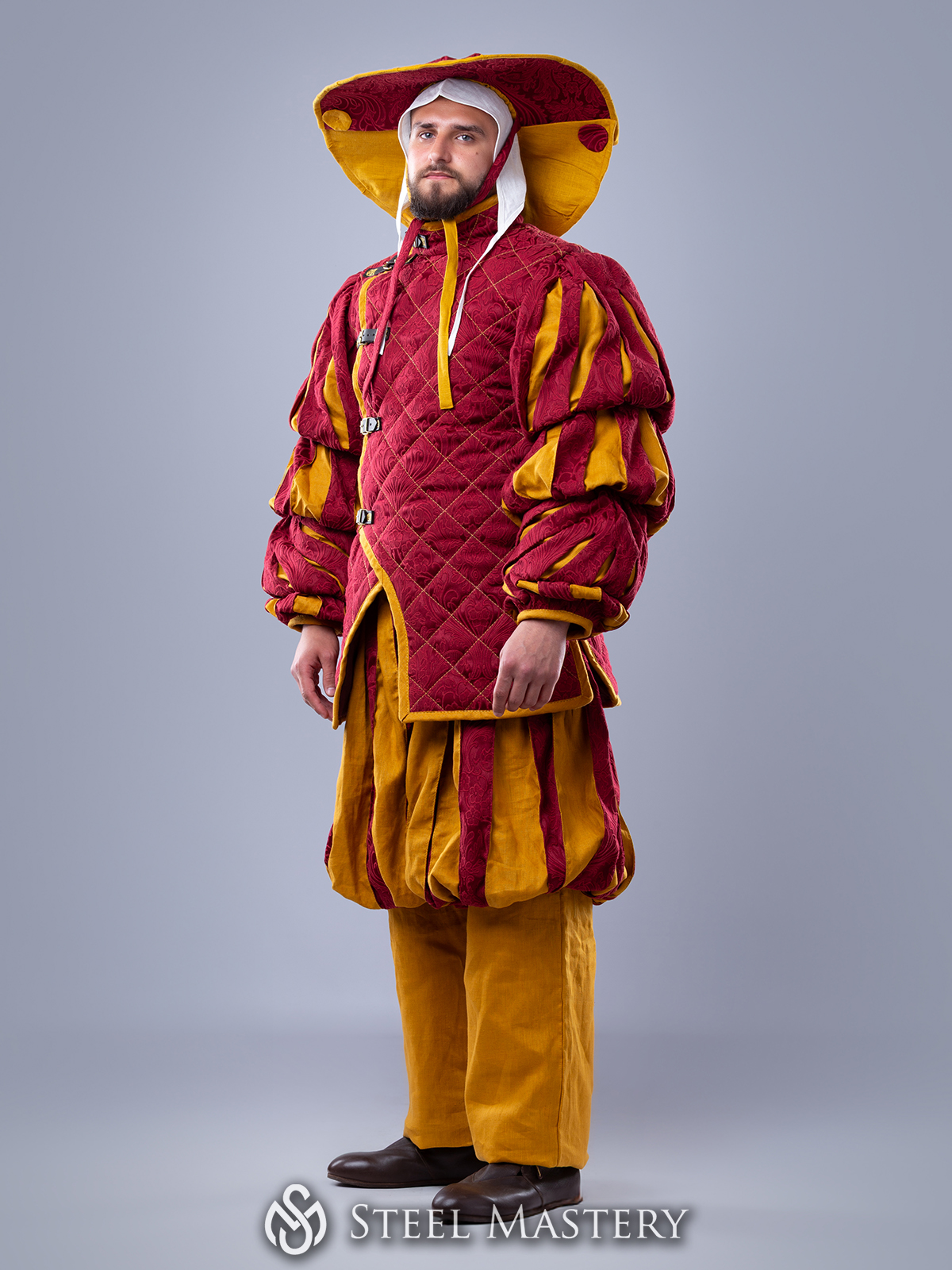 Stylized 16th century Landsknecht outfit inspired by the rich lore and captivating aesthetics of the WFB and designed for historical reenactment, fencing practice, and training. The set combines authentic Renaissance aesthetics with practical comfort.