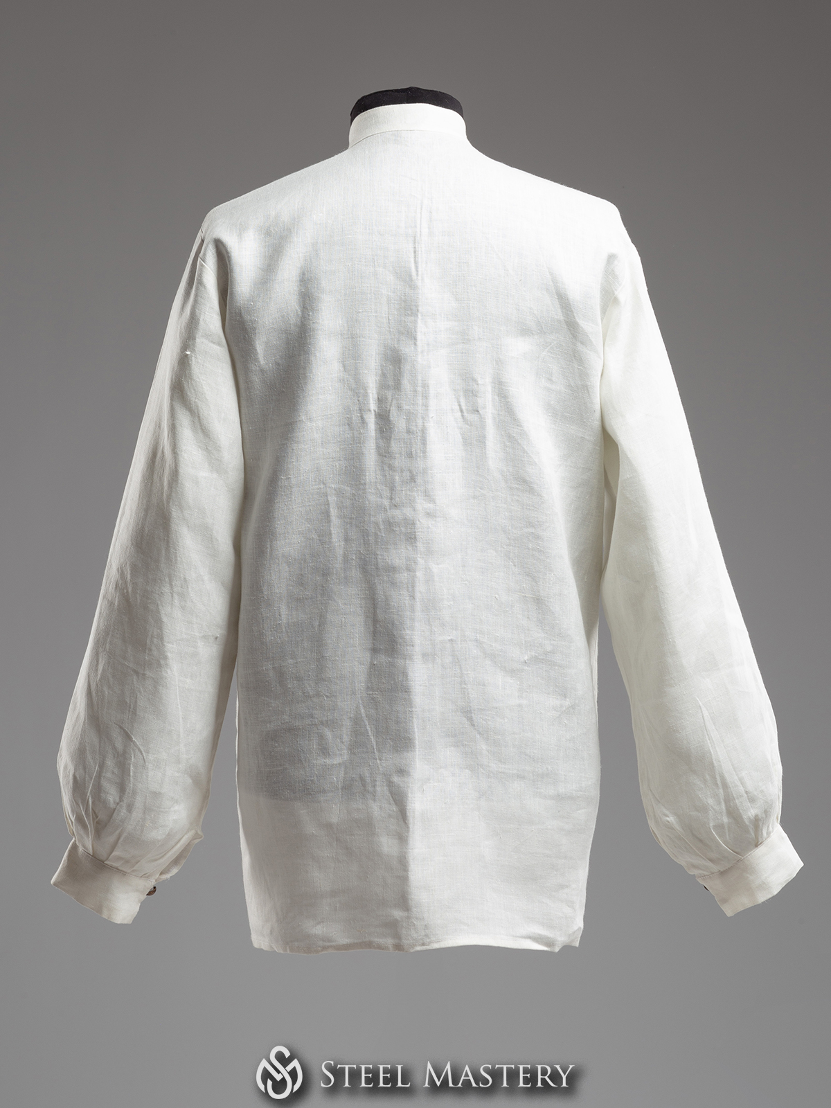 What truly sets this shirt apart are its graceful bishop sleeves. The sleeves are generously cut and gathered at the shoulders, creating an elegant billowing effect that cascades down to the wrist. Each sleeve is adorned with buttons along the edge, enhancing the exquisite design and allowing for a customizable fit and feel.