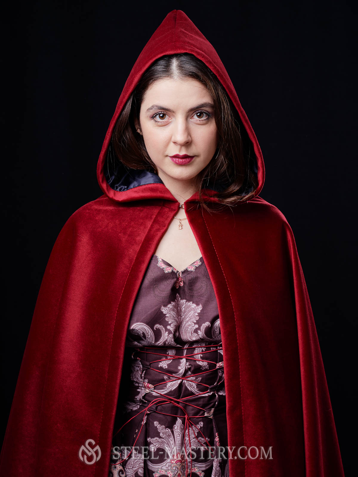 Here is such a stunning red medieval cloak with heavy, soft and dense velvety fabric we offer you. Of course, you can choose another color to your taste, but agree, scarlet red looks just gorgeous!