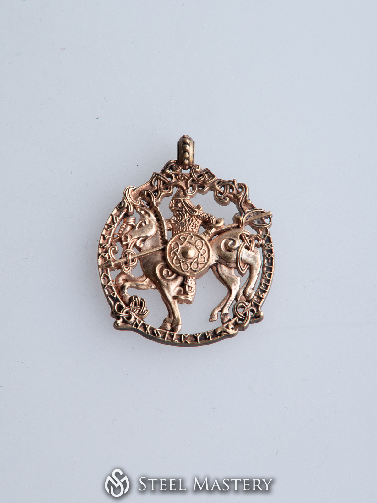 This amulet depicts the Norse god Tyr, a supreme deity in Scandinavian mythology and the son of Odin. Known as the god of war, Tyr courageously battles against the chthonic forces, embodying the valor and strength of the warrior spirit. The amulet portrays him as one-handed, a poignant representation stemming from the sacrifice of his right hand to the wolf Fenrir. This sacrifice occurred when the gods, known as the Aesir, bound Fenrir with unbreakable chains. Despite the physical loss, Tyr stands unwavering as the guardian of martial principles.