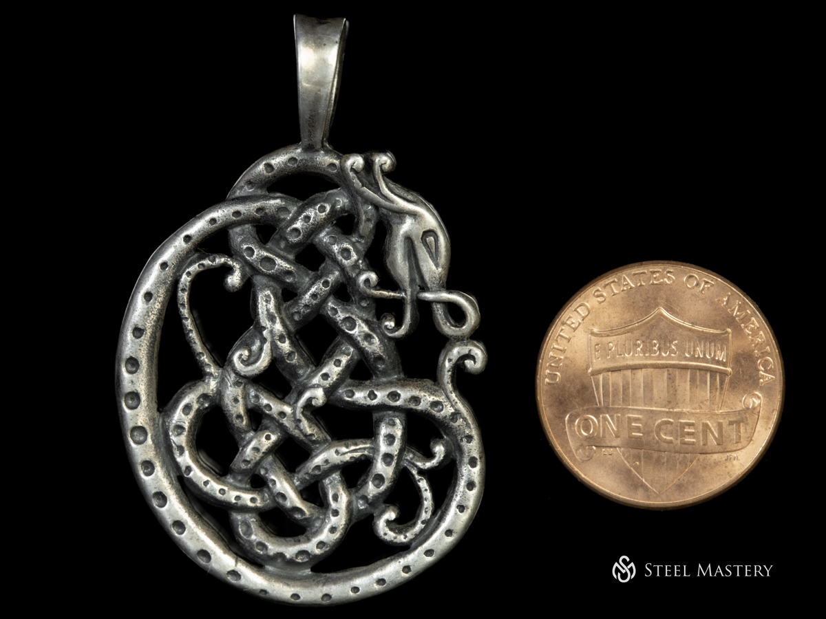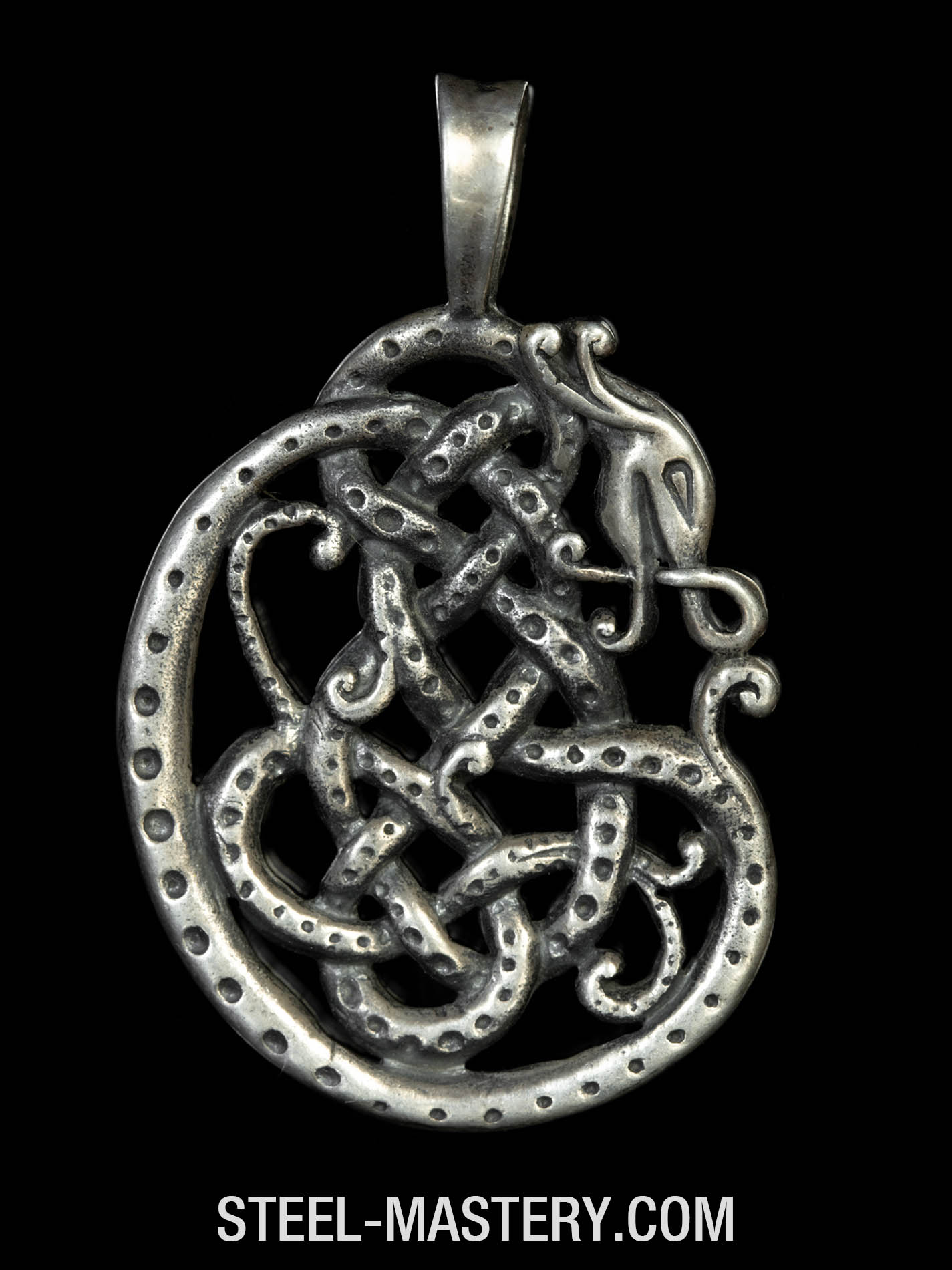 An original and exquisite execution of an ancient Viking amulet. Jörmungandr – the Midgard Serpent or Ouroboros – is a sea serpent so large that surrounds all the earth and grasps its tail. Vikings believed that Ragnarök would begin when it releases the tail. Dark silver bizarre rings of World Serpent – full of ancient magic – fascinates everyone’s eyes.